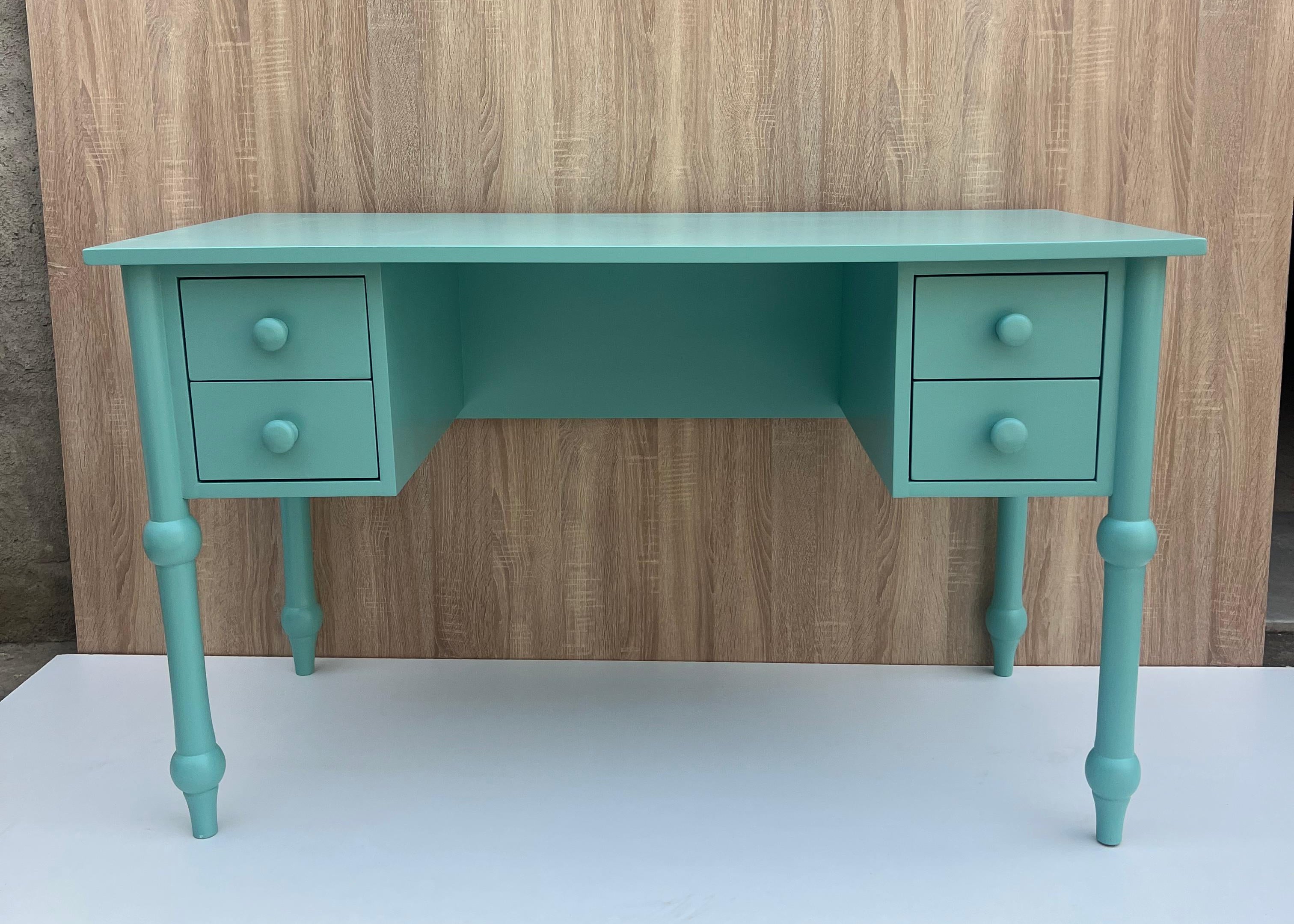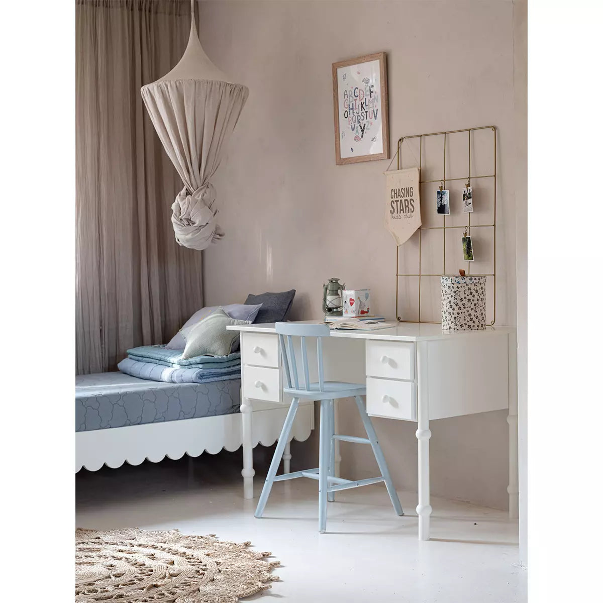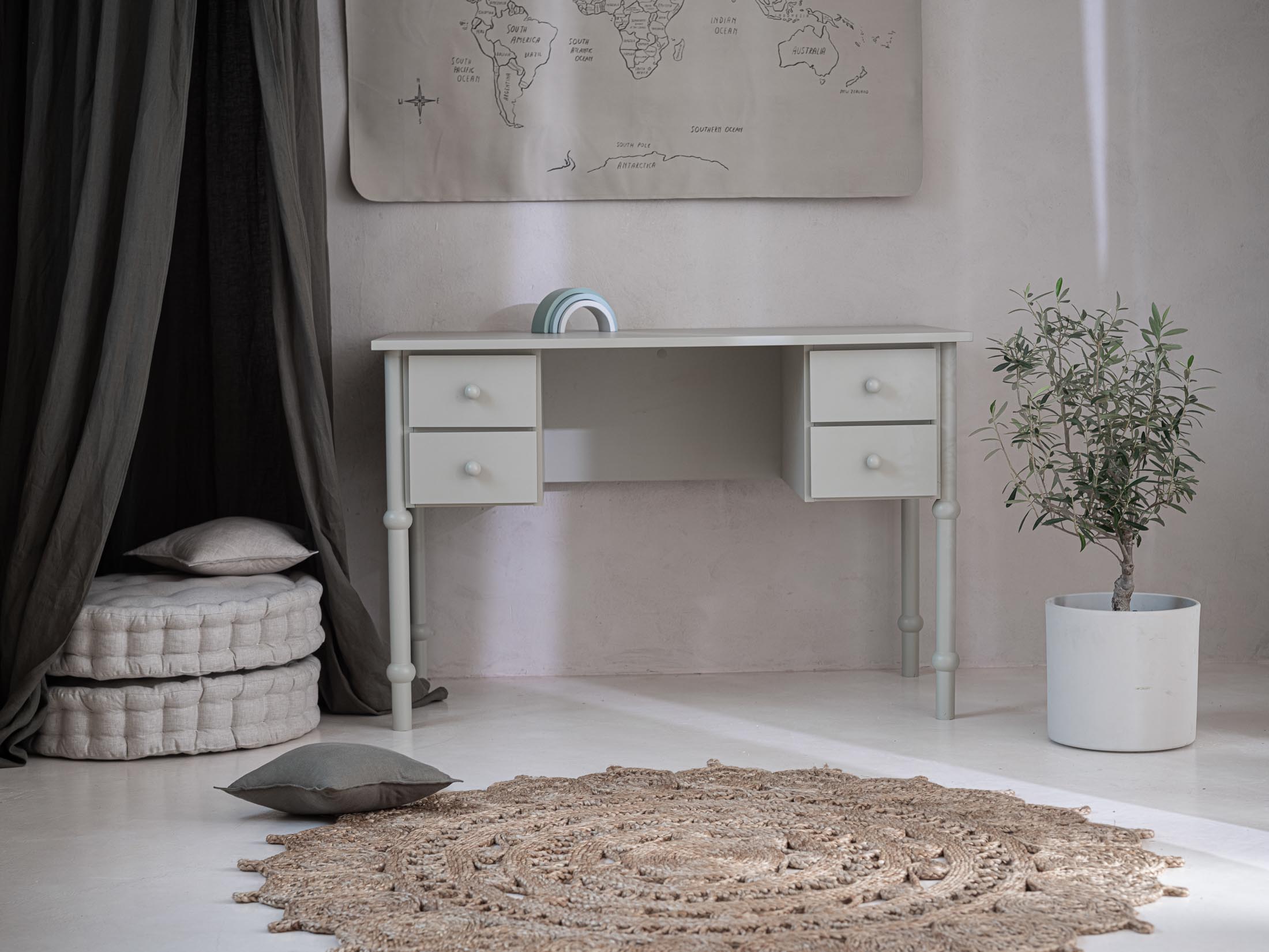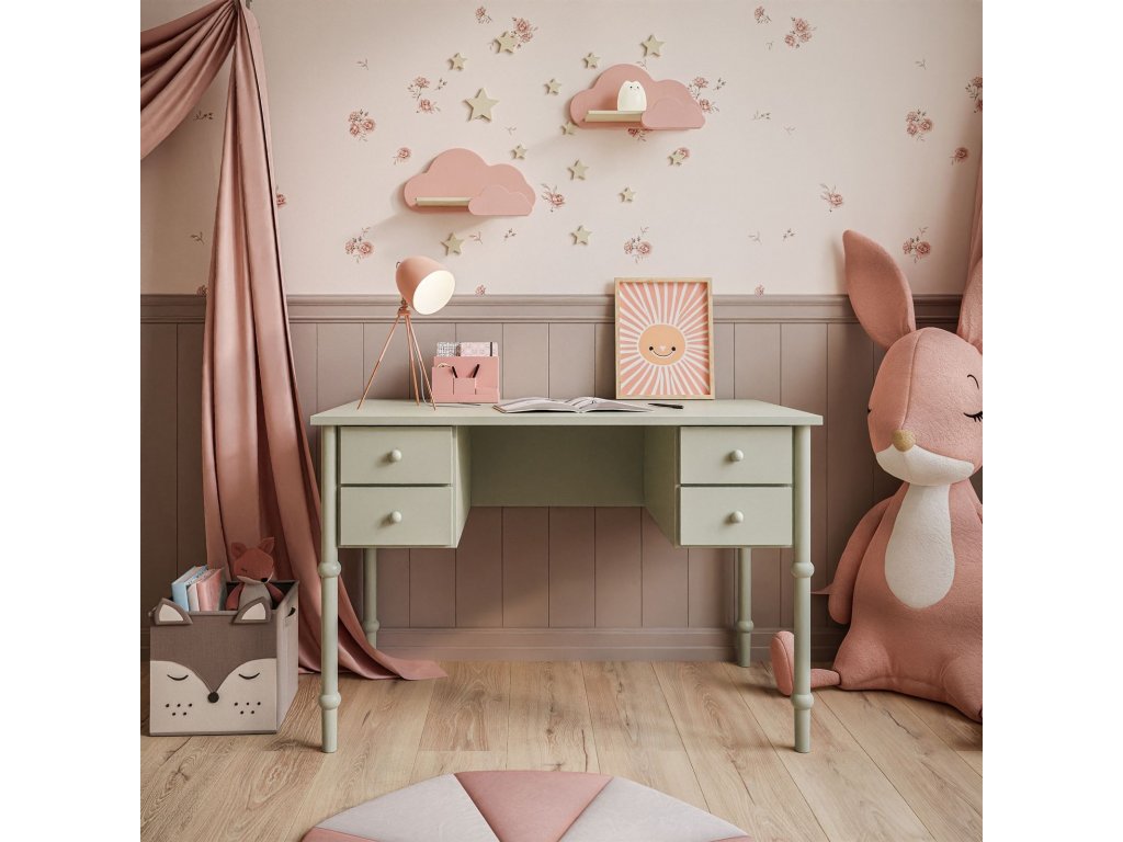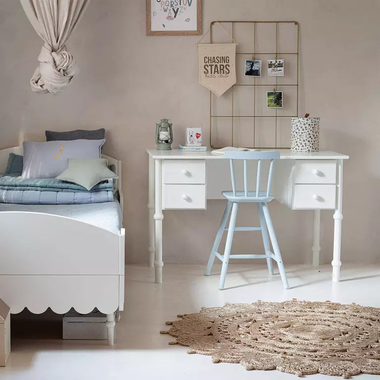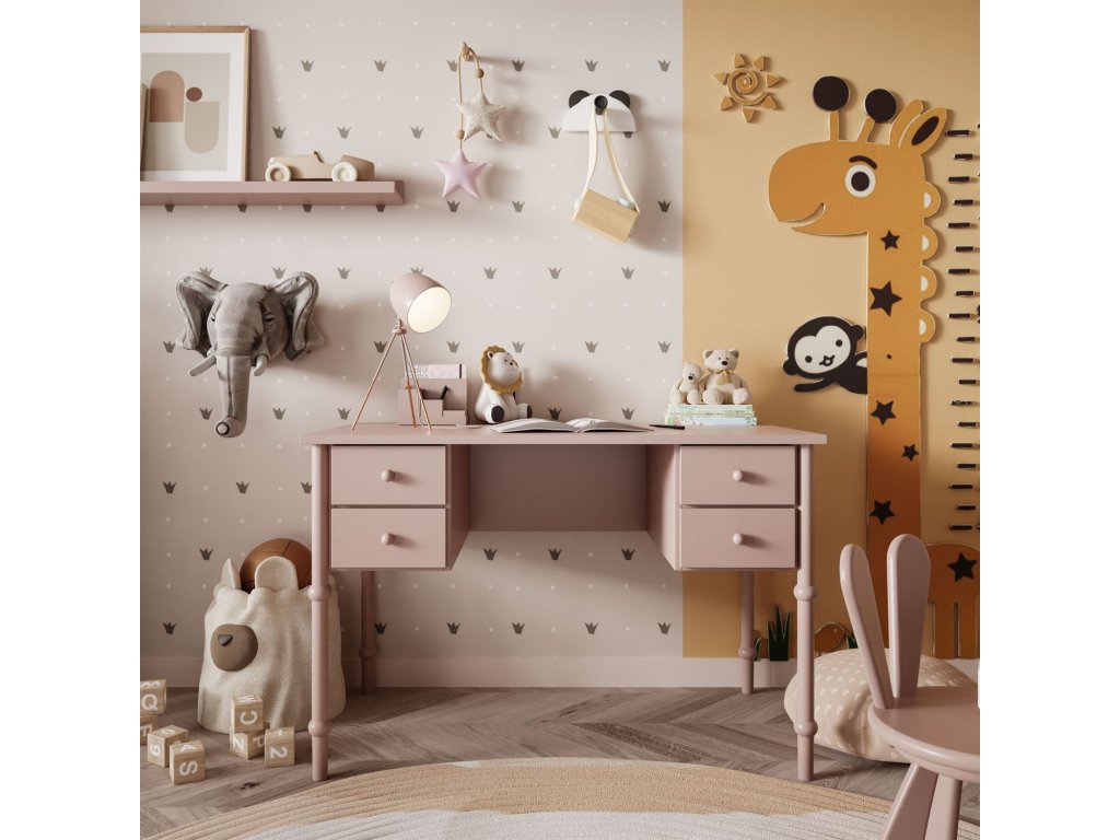 Babushka, parfaite pour meubler la chambre de votre enfant dans un univers authentique. Offrez-lui le bureau 4 tiroirs, un meuble à la fois vintage et moderne qui ravira votre fille avec ses finitions travaillées et soignées. Il aura un grand plan de travail de 113 x 65 cm pour dessiner et faire ses devoirs mais aussi un bel espace de rangement pour ses accessoires de bureau grâce aux 4 tiroirs.