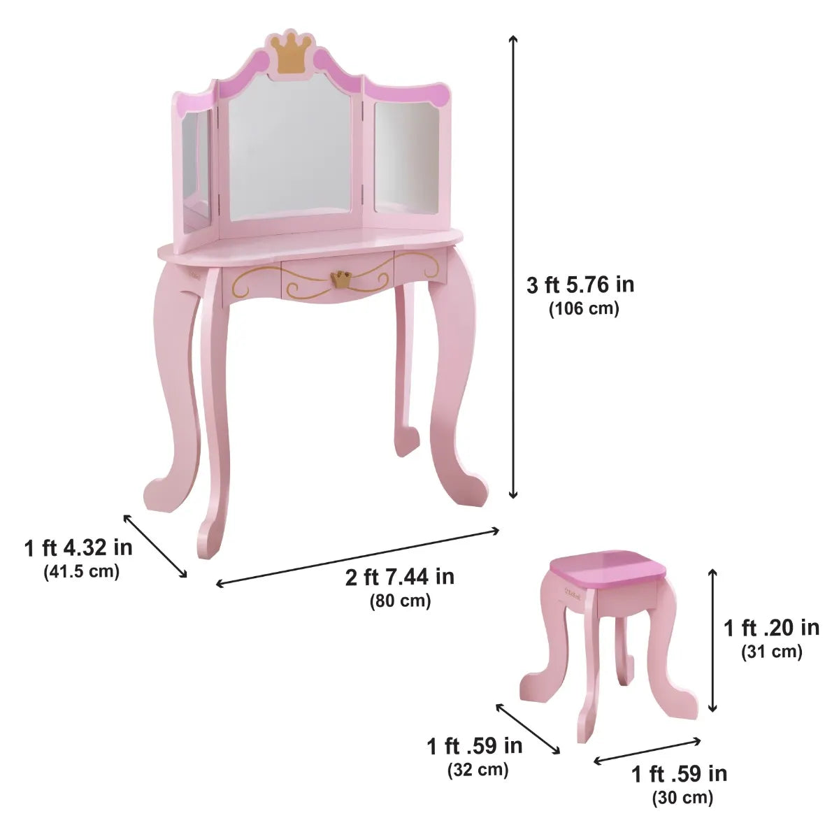 La Coiffeuse et tabouret Princesse ajoute une note d’élégance à la chambre de ton enfant. Avec le miroir à trois panneaux, les enfants vont s’assurer d’être les plus beaux , en s'assayant sur le tabouret rembourré. Les nuances de rose intense avec du filigrane doré et la couronne transformeront une chambre en véritable palais royal.