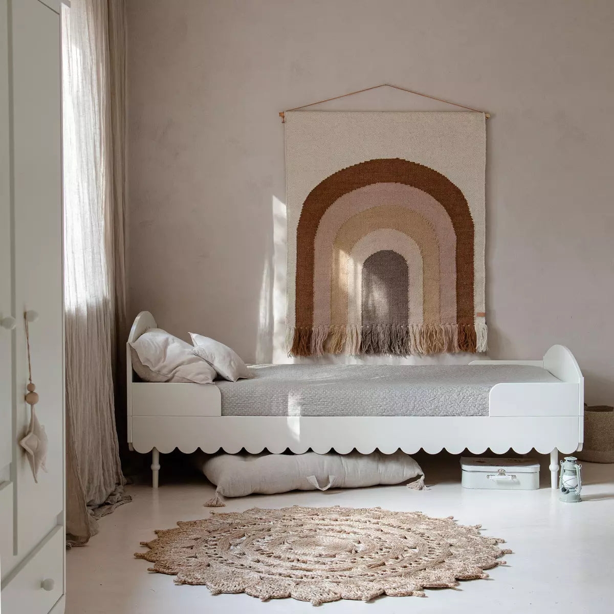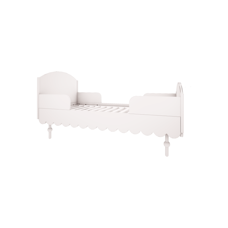 Craquez pour ce joli lit enfant 90 x 200 cm de la collection Babushka. Vous et votre petit serez séduits par les détails élégants : les extrémités du lit arrondies, les vagues romantiques et les pieds en bois massif, pour un rendu authentique. Complétez le lit avec un meuble de rangement ; la collection est disponible sur la boutique. Le lit est fourni avec son sommier mais sans matelas.