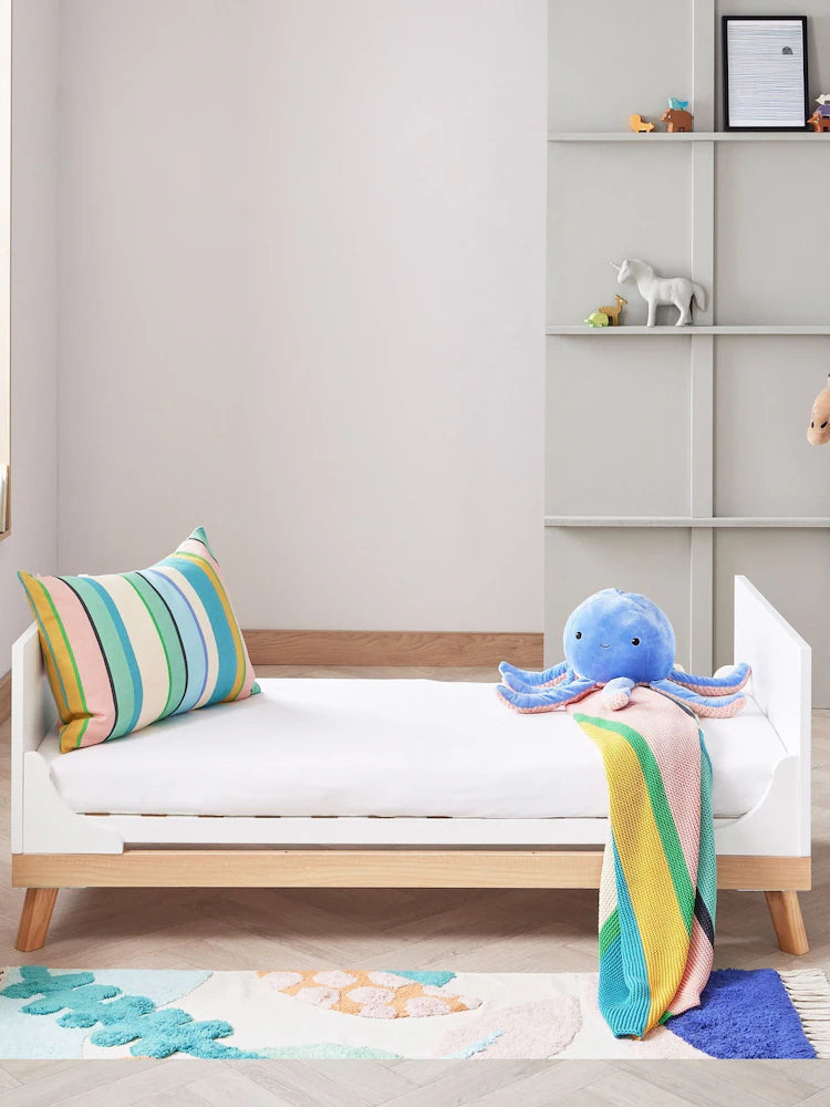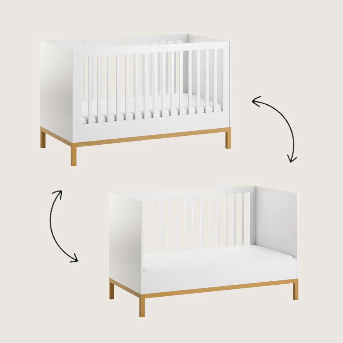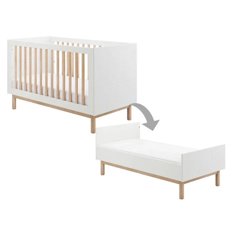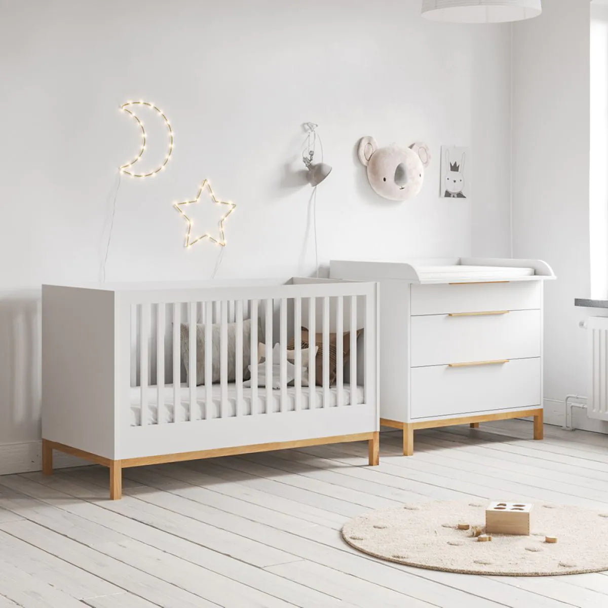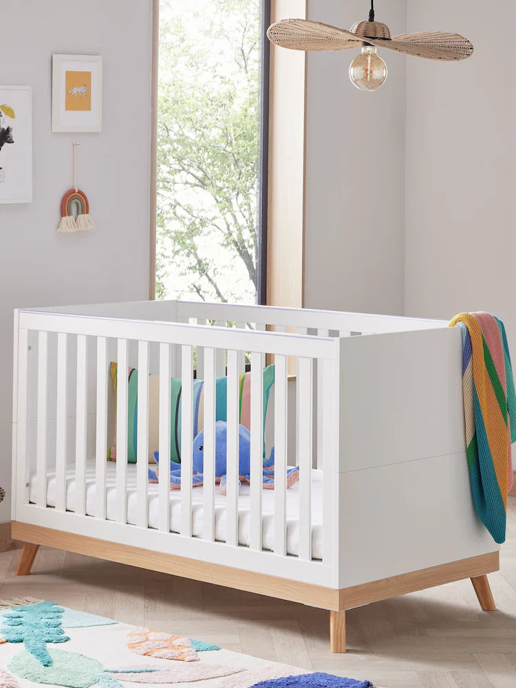 Découvrez le lit bébé moderne « Soie » 120 x 60, un lit bébé élégant et polyvalent, avec sa finition blanche éclatante et ses pieds en bois naturel. Son design scandinave intemporel s'intègre parfaitement à toutes les chambres d'enfant. Son sommier réglable sur trois niveaux offre confort et sécurité à votre bébé, tandis que ses pieds en bois robustes et sa construction en mélamine de haute qualité garantissent sa durabilité. Un choix idéal pour les parents qui souhaitent allier fonctionnalité et style dans leur intérieur.