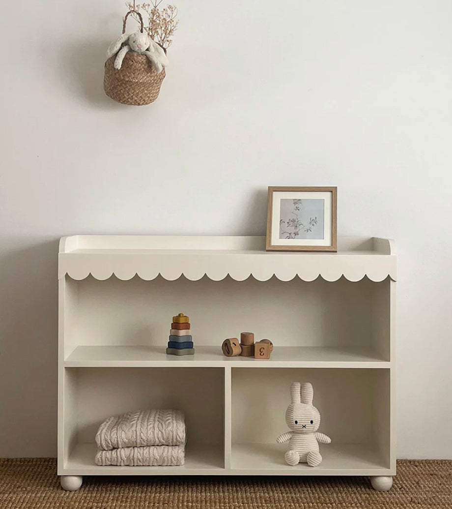 Nos étagères sont non seulement durables, mais aussi élégantes. Leurs bords festonnés apportent une touche ludique et ludique, tandis que les étagères spacieuses offrent un espace de rangement généreux pour tous les livres et jouets préférés de votre enfant.